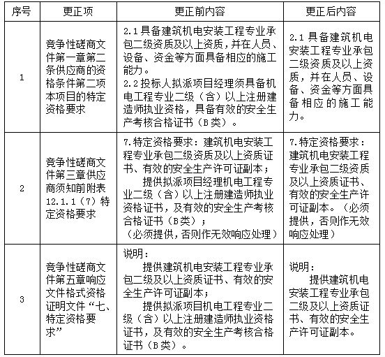 更正事項(xiàng):競爭性磋商文件