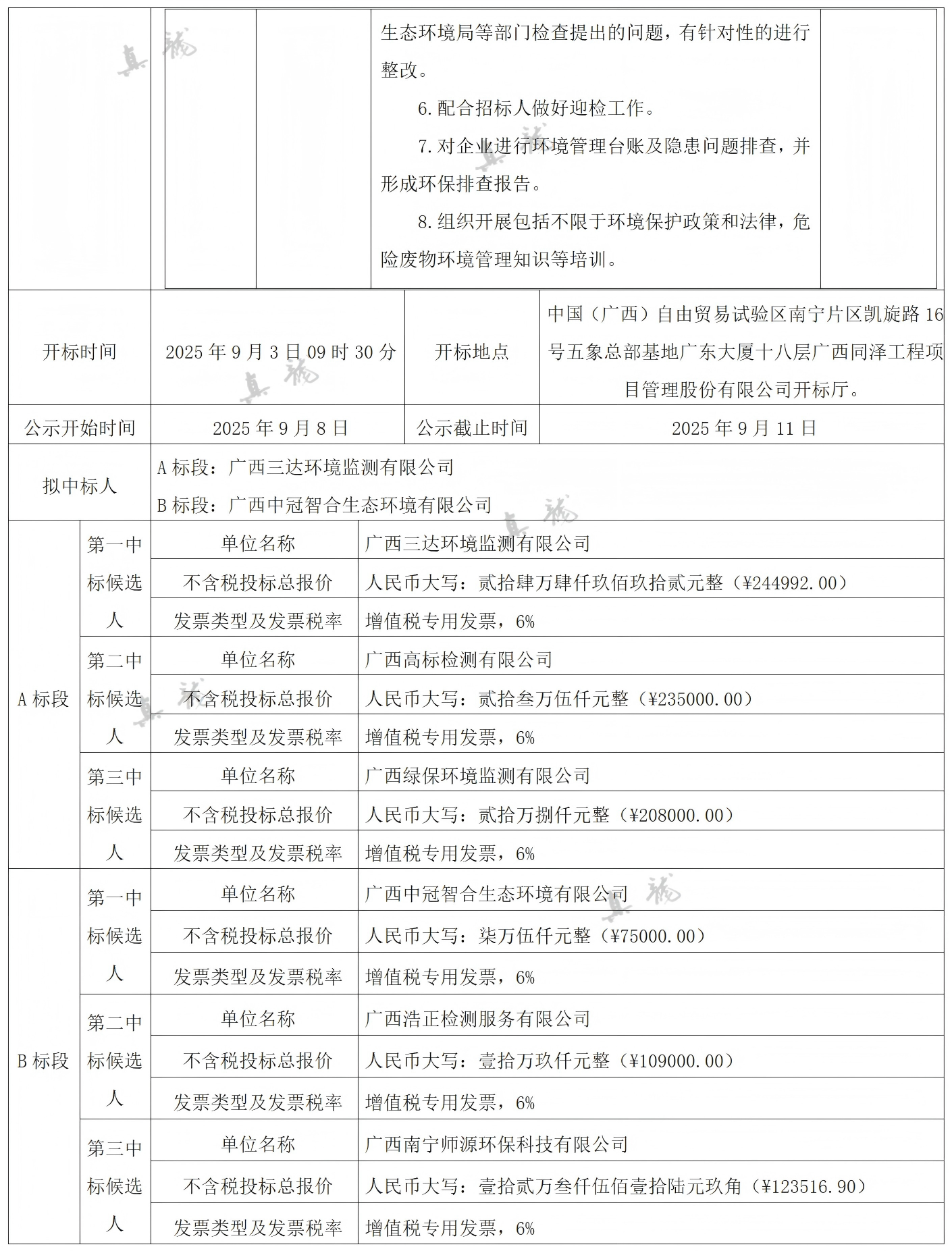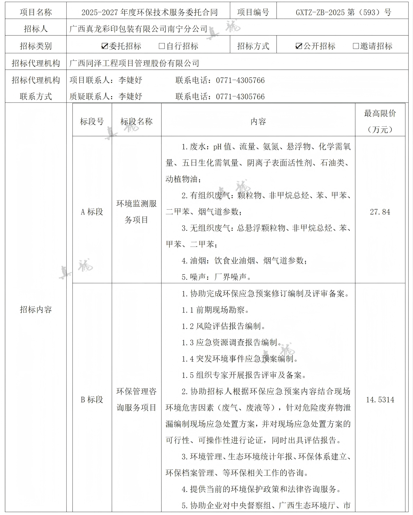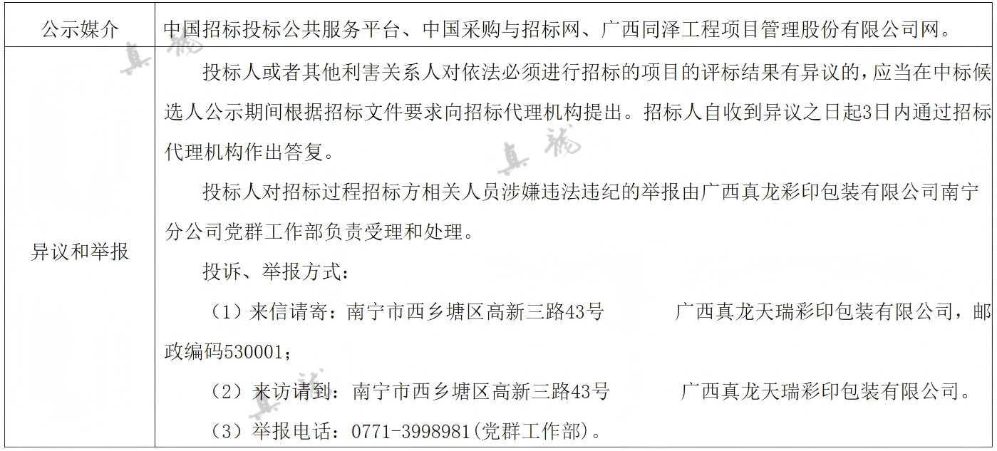 廣西真龍彩印包裝有限公司南寧分公司2025-2027年度環(huán)保技術(shù)服務(wù)委托合同(項目編號:GXTZ-ZB-2025第(593)號)中標(biāo)候選人公示