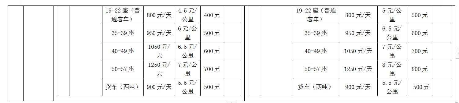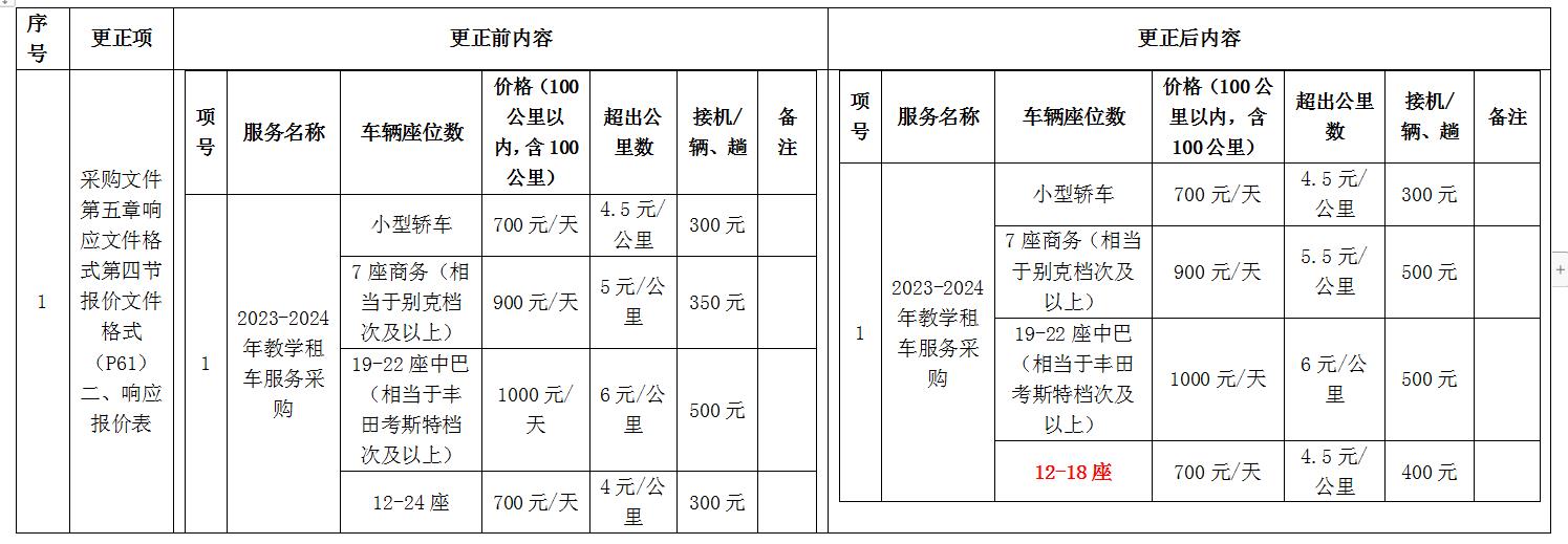 更正內容:招標文件中,所有租車價目表以更正后內容為準:
